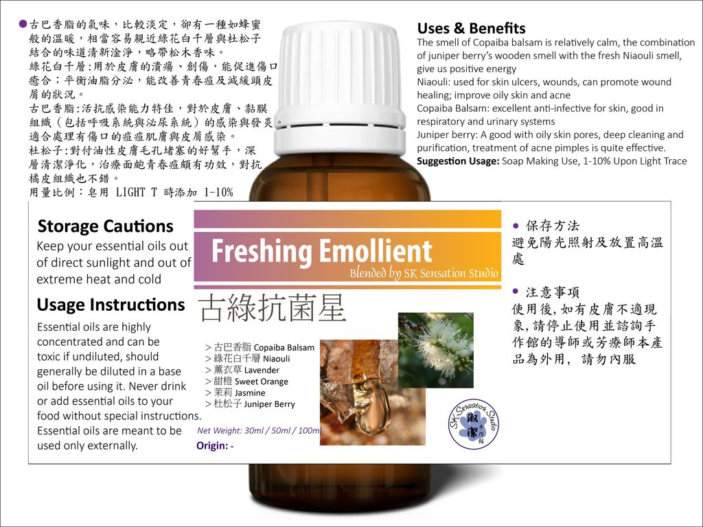 古巴香脂的氣味,比較淡定,卻有一種如蜂蜜般的溫暖,相當容易親近綠花白千層與杜松子結合的味道清新淦淨,略帶松木香味。